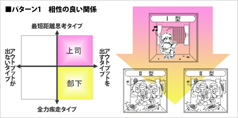 パターン1 相性の良い関係 → 上司=I型 部下=II型
