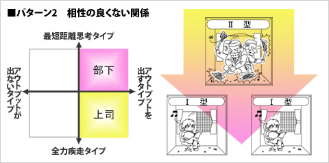 パターン2 相性の良くない関係 → 上司=II型 部下=I型