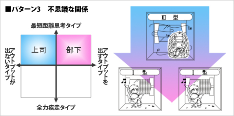パターン3 不思議な関係 → 上司=III型 部下=I型
