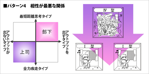 パターン4 相性が最悪な関係 → 上司=IV型 部下=I型
